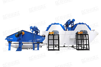 物料先經過擦洗機進行擦洗,除去砂顆粒表麵附著的泥粉;擦洗後的物(wù)料進入輪洗洗砂機進行(háng)二(èr)次清洗;擦洗機和輪式洗砂機溢流水進入副水箱進而進入旋流器進行細砂回收,同時將擦洗和洗砂過程中的泥水由(yóu)旋流器反水口溢流到尾水處理係統。經過擦(cā)洗(xǐ)機和(hé)輪式洗砂(shā)機清洗後的粗、細砂進入脫水(shuǐ)篩進行脫水,脫水篩下水箱的水由泵送入旋流器進行第二(èr)次細砂回收,同時將泥水由旋流器反水口溢流到尾水處(chù)理係統。